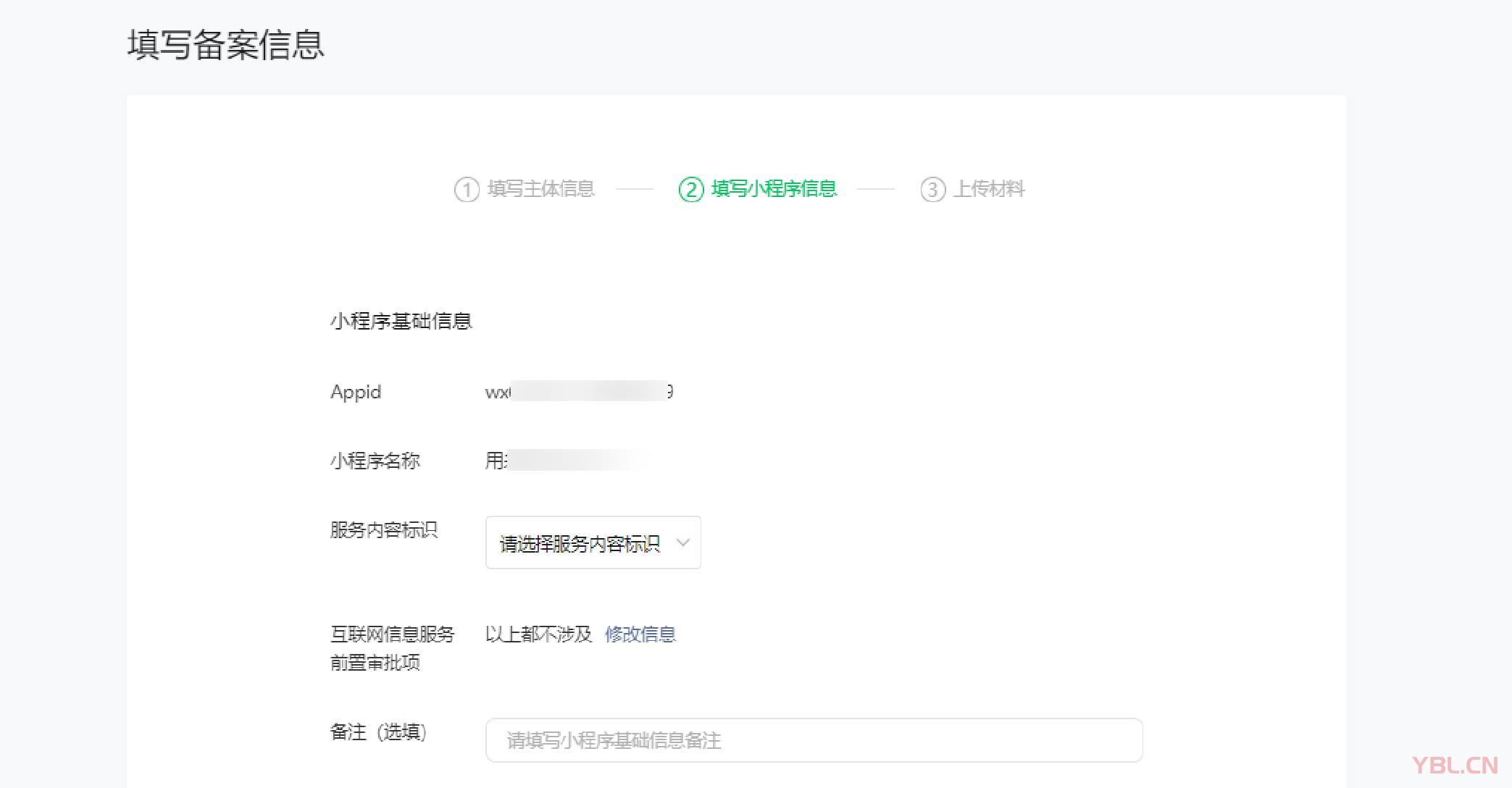 小程序管理后臺頂部會提示“小程序需補充備案信息”的提醒,點擊【去備案】即可進入備案流程